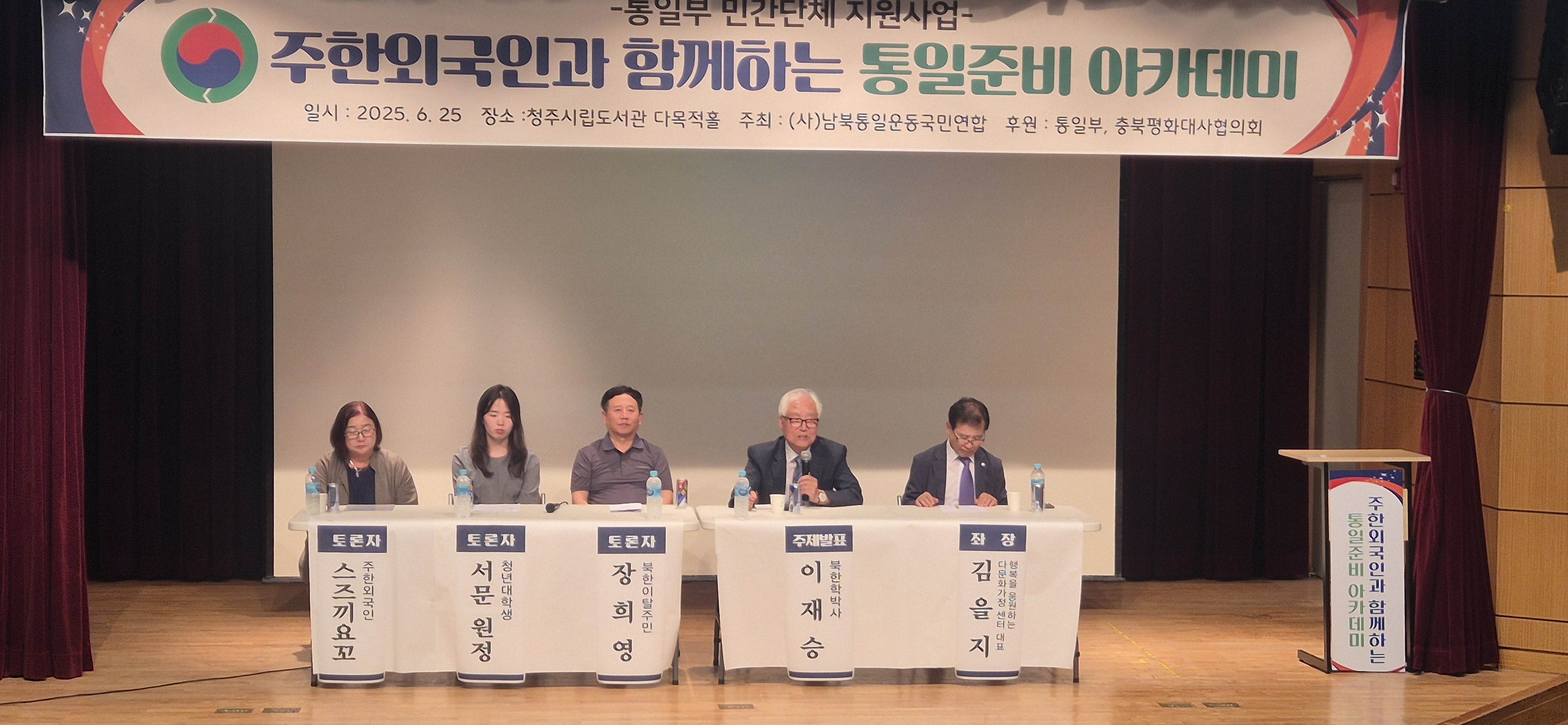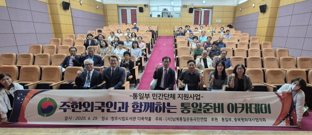 26일 오후 2시, 청주시 용암동 청주시립도서관 다목적홀에서 ‘주한외국인과 함께하는 충청북도 통일준비 아카데미’가 열렸다. 이번 행사는 통일부 민간단체 지원사업의 일환으로, 국내외 다양한 배경의 시민들이 함께 한반도 평화와 통일 비전을 공유하는 뜻깊은 자리였다.