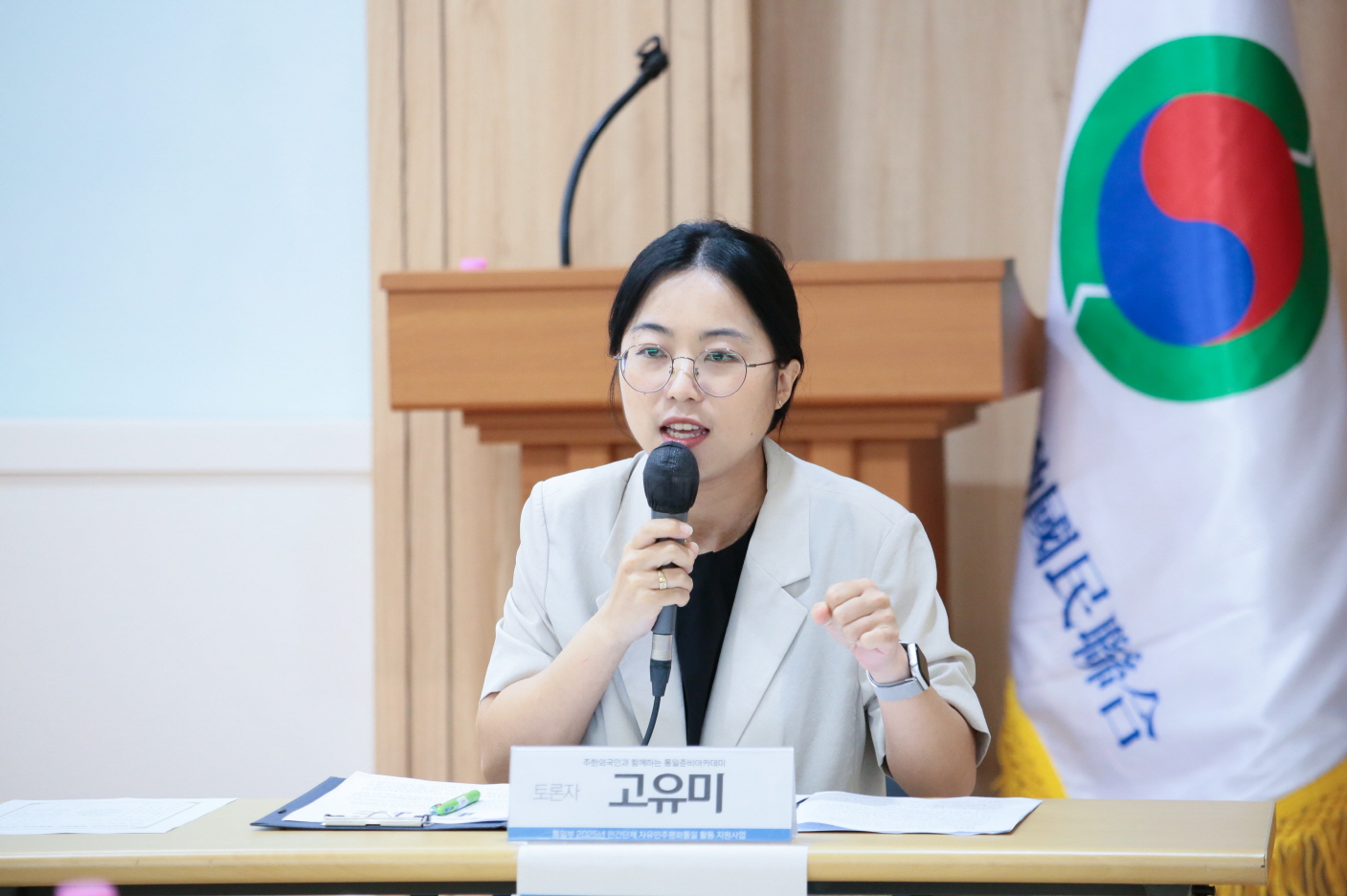 토론에서는 이연화 재한외국인회 회장이 외국인의 통일운동 참여 필요성을 역설하며, “외국인이 통일운동의 객체가 아닌 주체로 나서야 한다”고 말했다. YSP 고유미 팀장은 청년들이 일상 속 캠페인과 콘텐츠 제작을 통해 통일 참여로 나아가는 사례를 공유했다. 또한 이호석 한국다문화정책연구소 대표는 “다문화 사회의 갈등 조정 경험이 통일 이후 공동체 통합의 모델이 될 수 있다”고 분석했다. 질의응답에서는 외국인의 역할, 통일교육 설계, 협력 플랫폼 구축 방안 등이 논의되며, 정부·민간·시민이 함께하는 다층적 거버넌스의 필요성이 제기됐다.