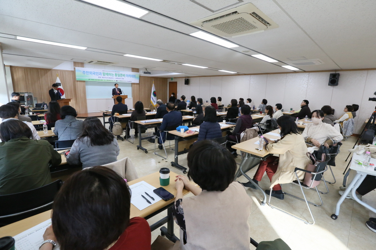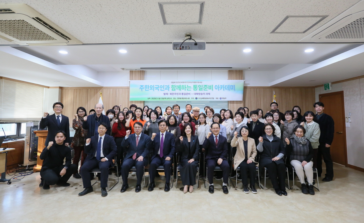 남북통일운동국민연합(회장 김석진)은 11월 13일 서울 청파동 통일회관에서 ‘주한외국인과 함께하는 통일준비 아카데미’를 개최했다. 이날 행사는 영상 상영을 시작으로 김석진 회장의 인사말, 발제와 토론, 질의응답 순으로 진행됐다. 김 회장은 세대 변화와 문화적 차이가 통일 논의에 새로운 관점을 요구하고 있다며, 자유를 누리는 이들이 그렇지 못한 이들에게 손을 내미는 것이 시대적 책임이라고 강조했다.