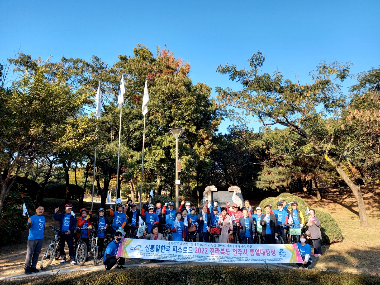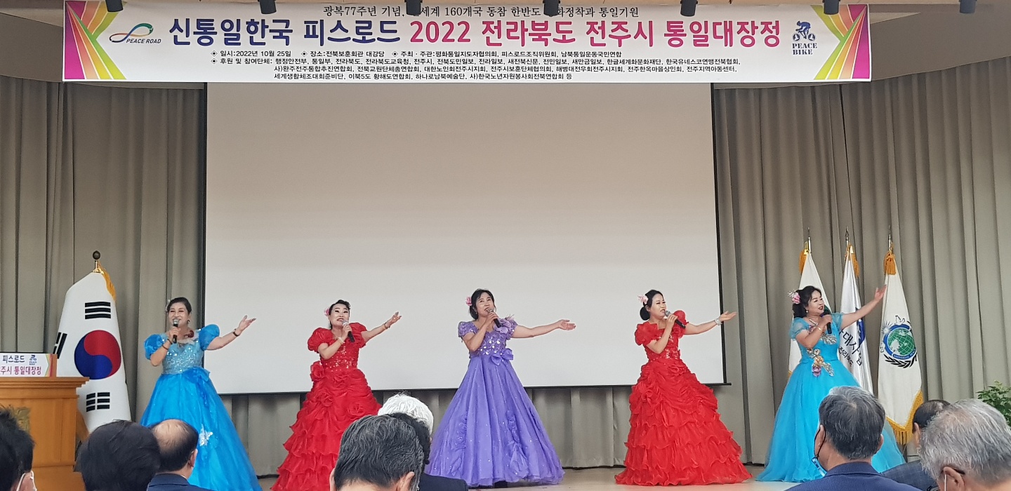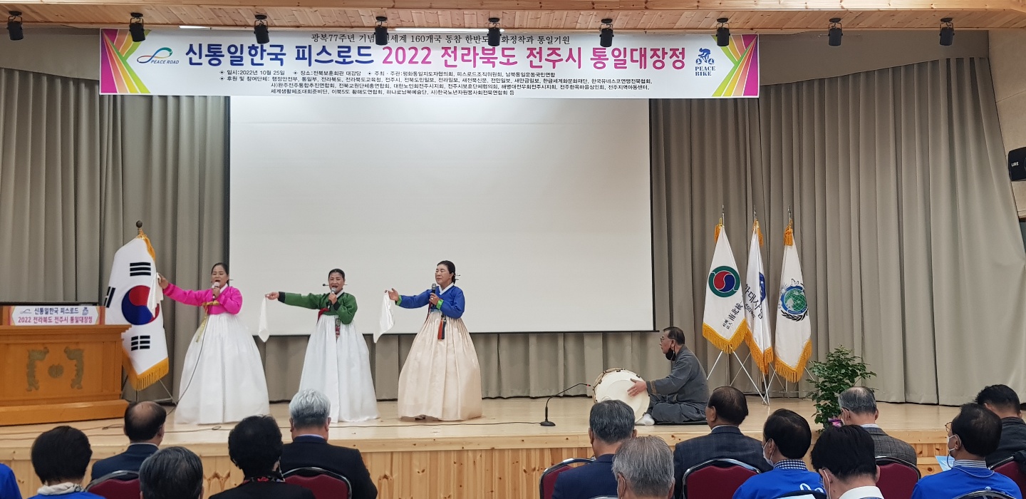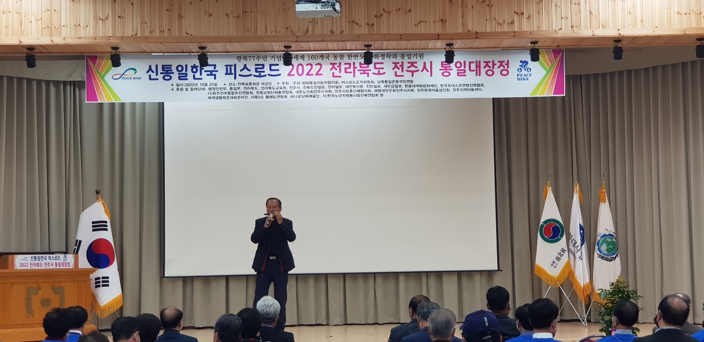 한반도 평화정착과 통일을 기원하는 ‘전세계 160개국 동참 인류평화 프로젝트- 신통일한국 피스로드 2022 전주시 통일대장정’ 행사가 25일 오후 전주시 덕진구 권삼득로 관내소재 전북보훈회관과 덕진공원 일원에서 ’전주시 각계지도자 1백여명이 참석한 가운데 성황리에 개최되었습니다.